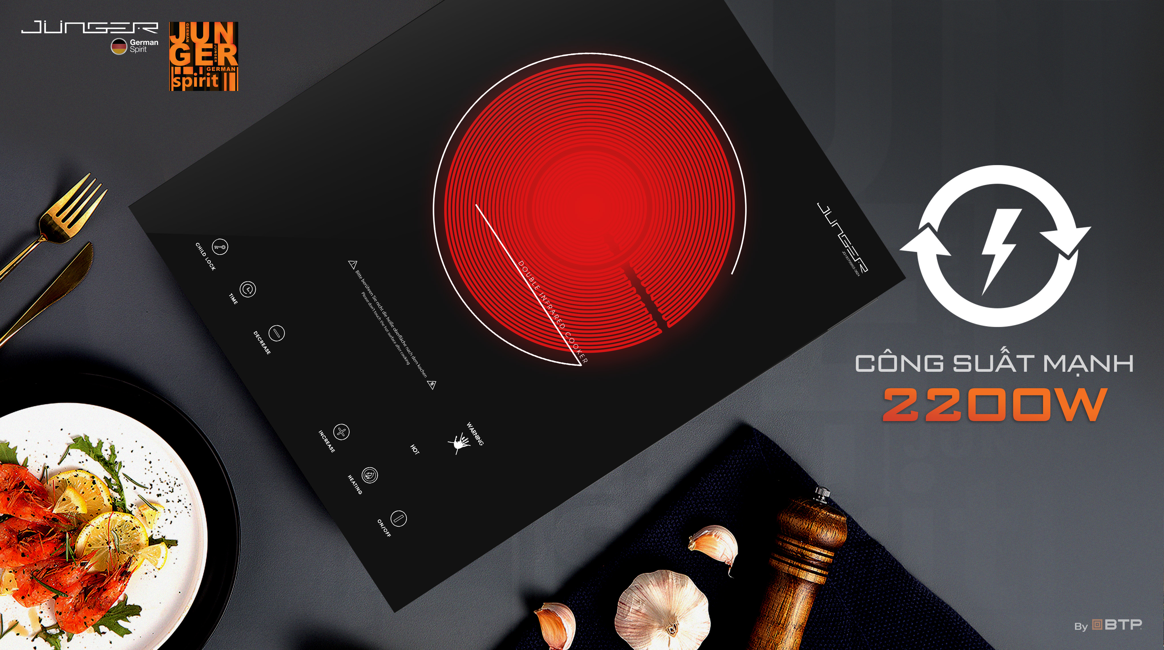 Bếp hồng ngoại đơn Junger IS-19 với thiết kế mang đậm chất Đức, cùng công suất 2200W mạnh mẽ, không chỉ là "phụ tá" đứng sau những bữa cơm ngon của gia đình mà còn là điểm nhấn giúp không gian trở nên sang trọng và đẳng cấp.