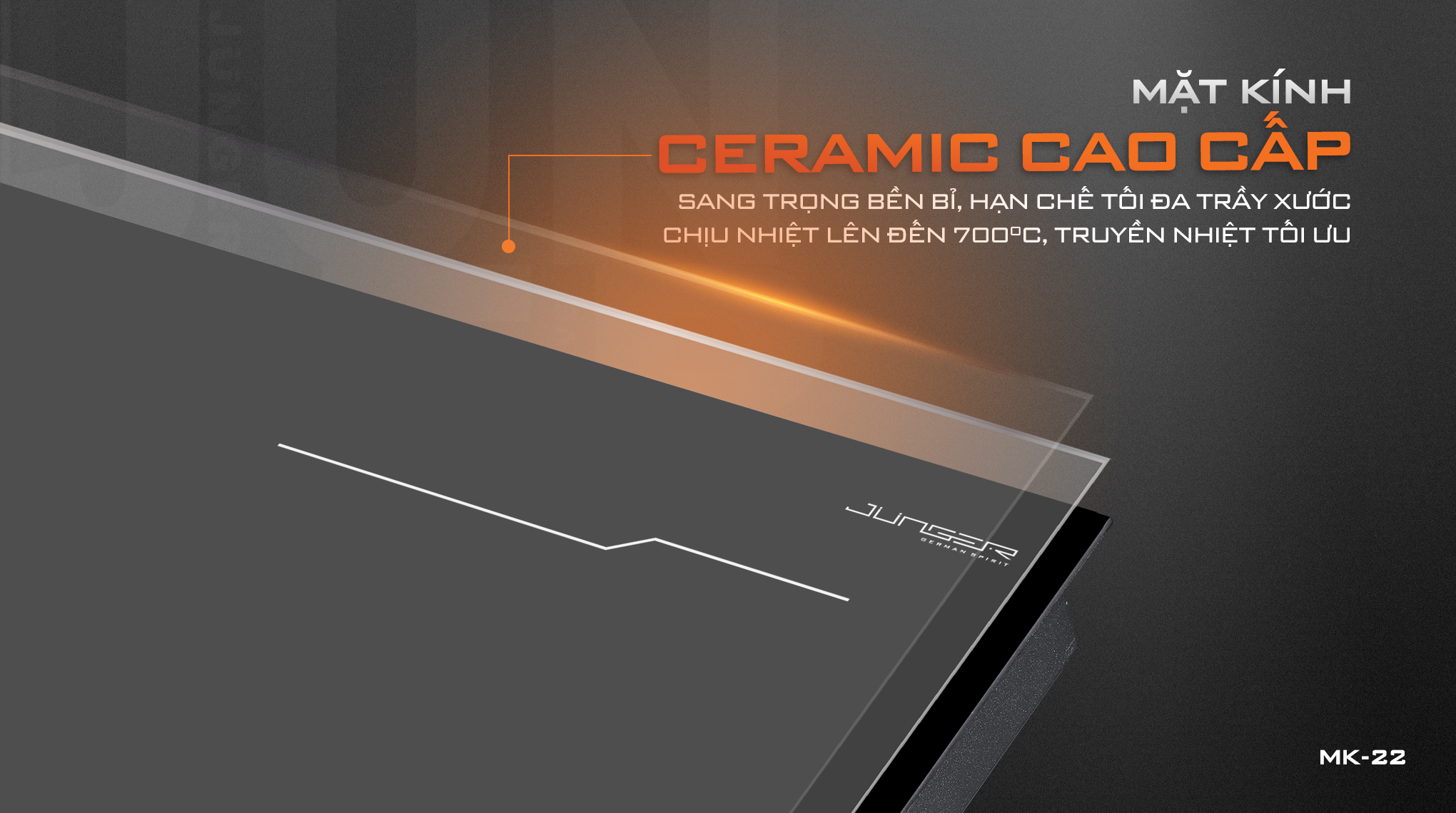 Mặt kính Ceramic cao cấp, sang trọng, bền bỉ, hạn chế trầy xước, chịu nhiệt tốt, truyền nhiệt tối ưu.