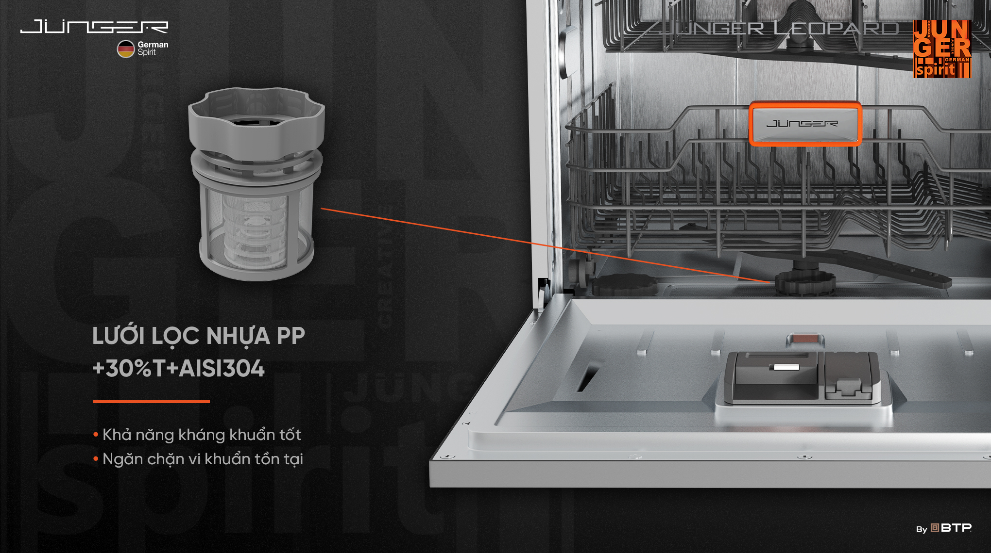 Máy rửa bát Junger Leopard DWJ-100 được ứng dụng 4 công nghệ hiện đại bậc nhất mang lại hiệu quả rửa bát “Sạch khô tuyệt đối"