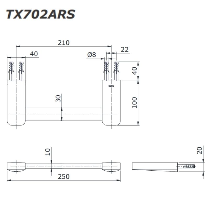 Nằm trong bộ phụ kiện REI-S, TOTO TX702ARS sở hữu thiết kế gắn tường nhỏ gọn, thanh đơn với kích thước 250 x 100 x 20 mm, hài hòa mọi không gian. Sản phẩm phù hợp khi đặt cạnh chậu rửa mặt để thuận tiện khi vệ sinh hằng ngày.