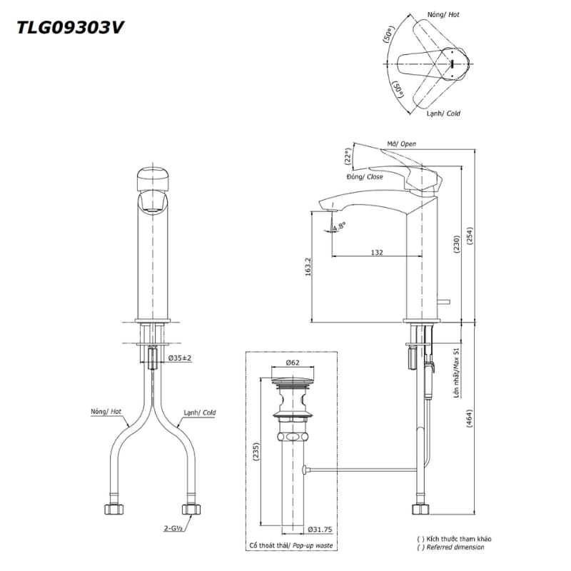 Kích thước sản phẩm vòi chậu rửa mặt TOTO TLG09303V: